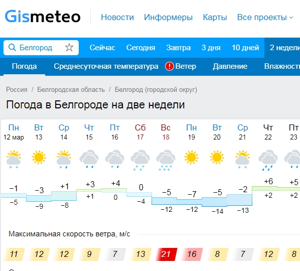 Гисметео Белгород на 2 недели