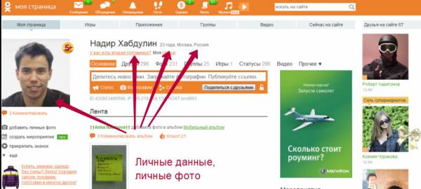 Профиль в Одноклассниках содержит личные данные, в нем указаны возраст, местонахождение владельца, его имя, фамилия. Попав на страницу впервые, пользователь видит основное меню, в котором содержится: